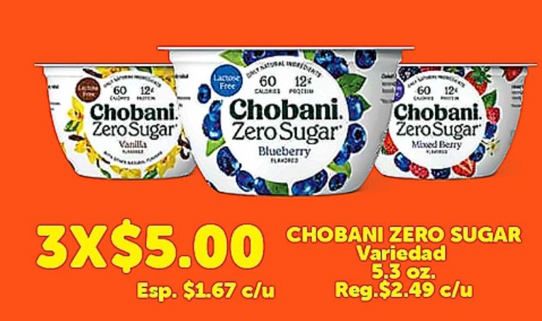 free calores portsm chobani zero sugar vanilla blueberry flandres chobani. mixed berry x$esp. $c/u variedad reg.$c/u
