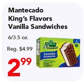 mantecado king's flavors vanilla sandwiches reg. $flavory sondwiches
