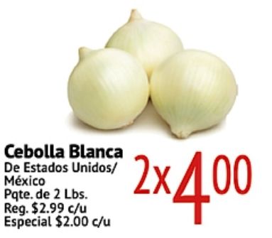 cebolla blanca unidos/ méxico pqte reg. $c/u especial