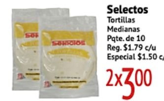 sorride selectos tortillas medianas pqte reg. $c/u especial