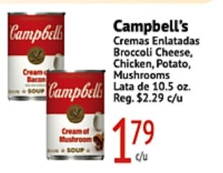 campbell cream bacon soup campbell's cremas enlatadas broccoli cheese chicken, potato, mushrooms lata mushroom reg. $c/u