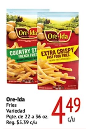 ore-ida country french fries extra crispy fast food variedad pqte reg. $c/u