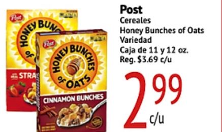 honel stra honey bunches oats cinnamon post cereales variedad caja reg. $c/u