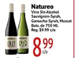 natureo vino alcohol sauvignon-syrah garnacha-syrah, muscat botsde reg. $c/u