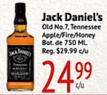 jack daniel's tennessee apple/fire/honey reg. $c/u
