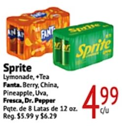 sprite fant lymonade+tea fanta berry, china, pineapple, uva, fresca, pepper pqte. latas reg. $spri