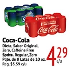 coca-cola dieta sabor original, zero, caffeine free sprite regular, zero coca cola pqte. latas reg. $c/u