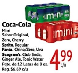coca-cola mini sabor original zero, cherry sprite regular smen fanta. china/zero, seagram's. club soda, ginger ale, tonic water pqte. latas reg. $c/u