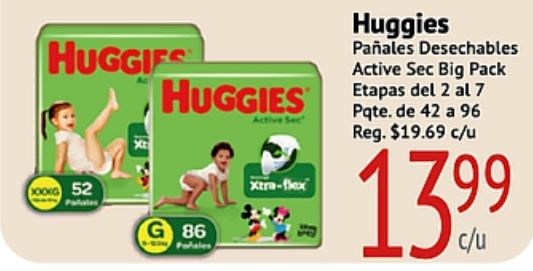huggies pahales active xtra-flex paƱales desechables pack etapas pqte reg. $c/u
