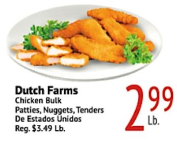 dutch farms chicken bulk patties nuggets, tenders unidos