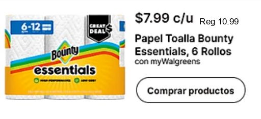 $c/u creat deal bounty essentials papel toalla rollos mywalgreens comprar productos