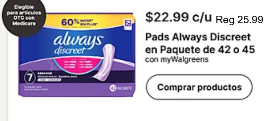 elegible articulos medicare influs always discreet $c/u pads paquete mywalgreens comprar productos