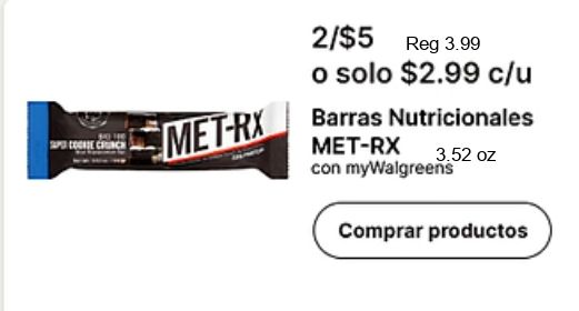 /$reg $c/u met-rx barras nutricionales mywalgreens comprar productos