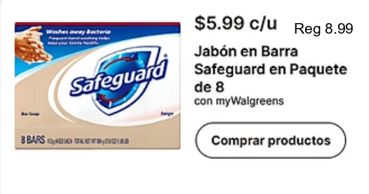 bars $c/u jabón barra safeguard paquete mywalgreens comprar productos