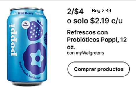 poppi wild berry /$reg $c/u refrescos probióticos mywalgreens comprar productos