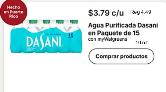 puerto rico $c/u agua purificada dasani paquete dajani mywalgreens comprar productos