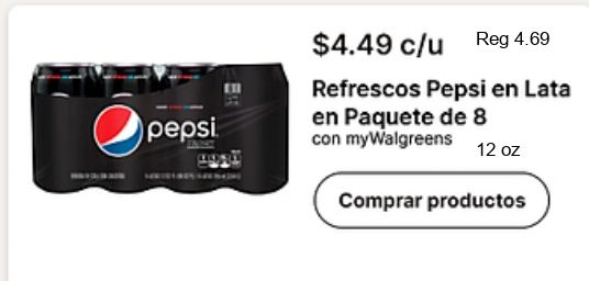pepsi $c/u refrescos lata paquete mywalgreens comprar productos