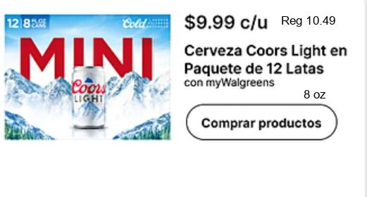 cold $c/u coors light cerveza paquete latas mywalgreens comprar productos