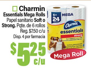 Charmin Essentials Mega Rolls Papel sanitario Soft o Strong. Pqte. de 6 rollos