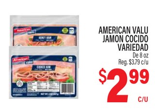 AMERICAN VALU JAMON COCIDO VARIEDAD De 8 oz.