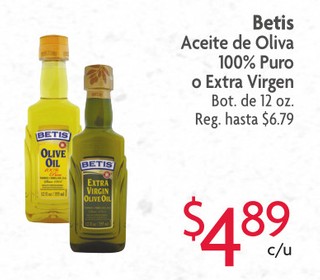 Betis Aceite de Oliva 100% Puro o Extra Virgen Bot. de 12 oz.