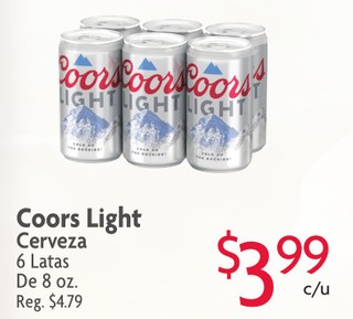 Coors Light Cerveza 6 Latas De 8 oz.