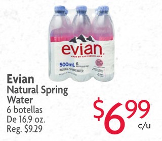 Evian Natural Spring Water 6 botellas De 16.9 oz.