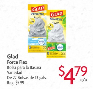 Glad Force Flex Bolsa para la Basura Variedad De 22 Bolsas de 13 gals.
