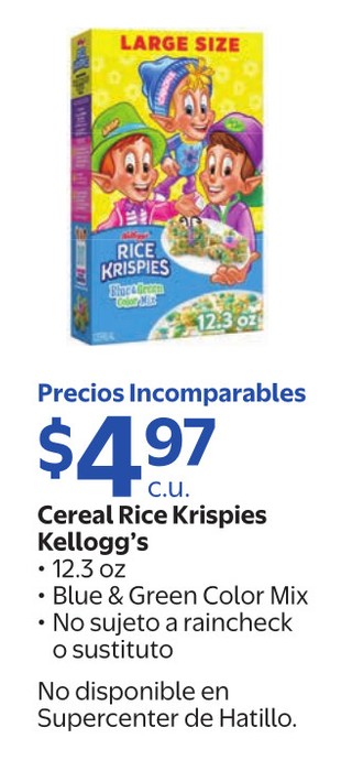 Cereal Rice Krispies Kellogg's 12.3 oz Blue & Green Color Mix