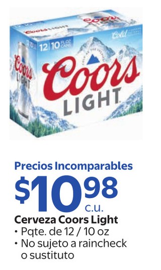 Cerveza Coors Light Pqte. de 12 / 10 oz.